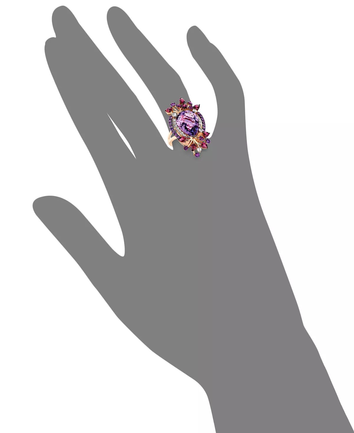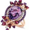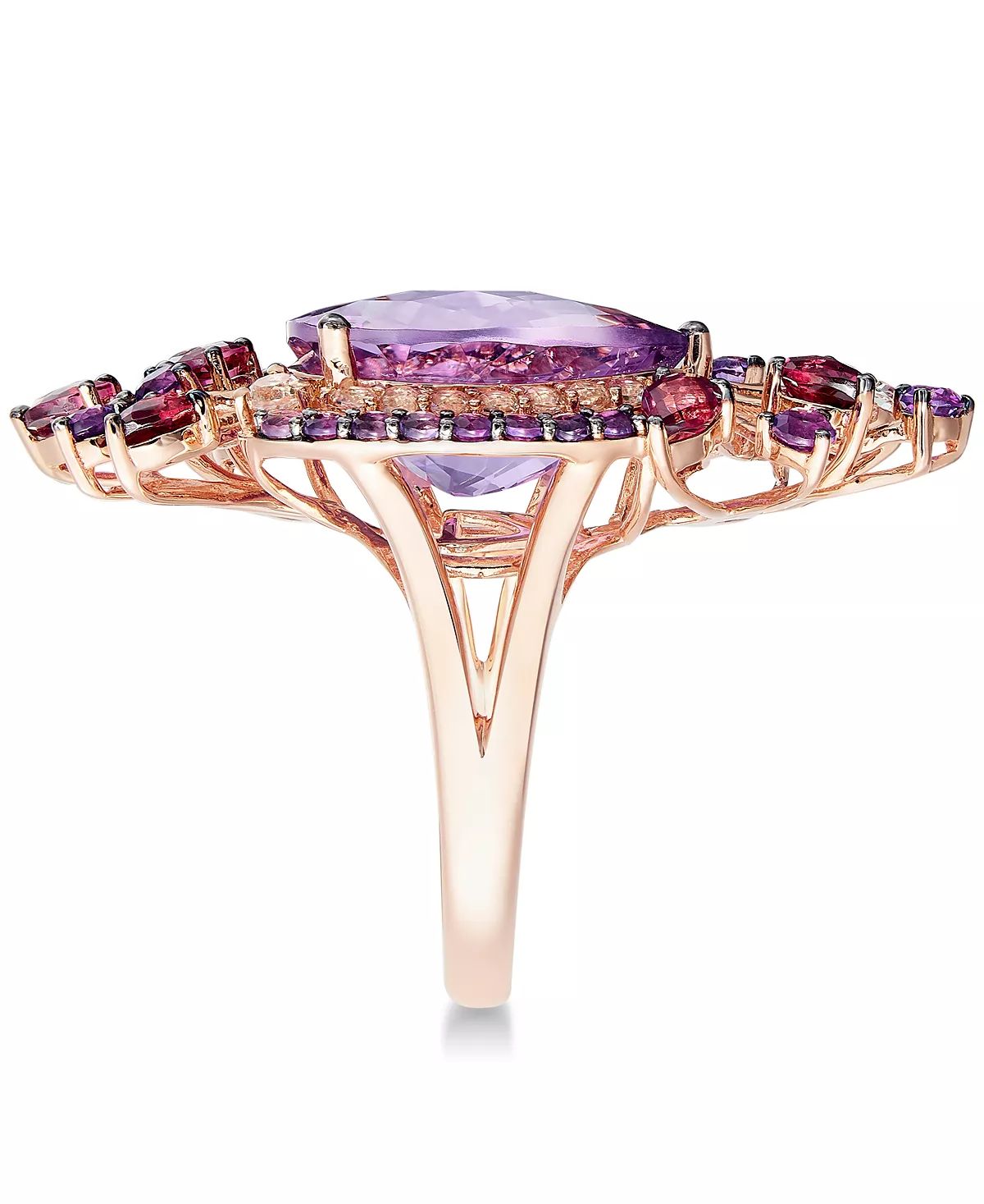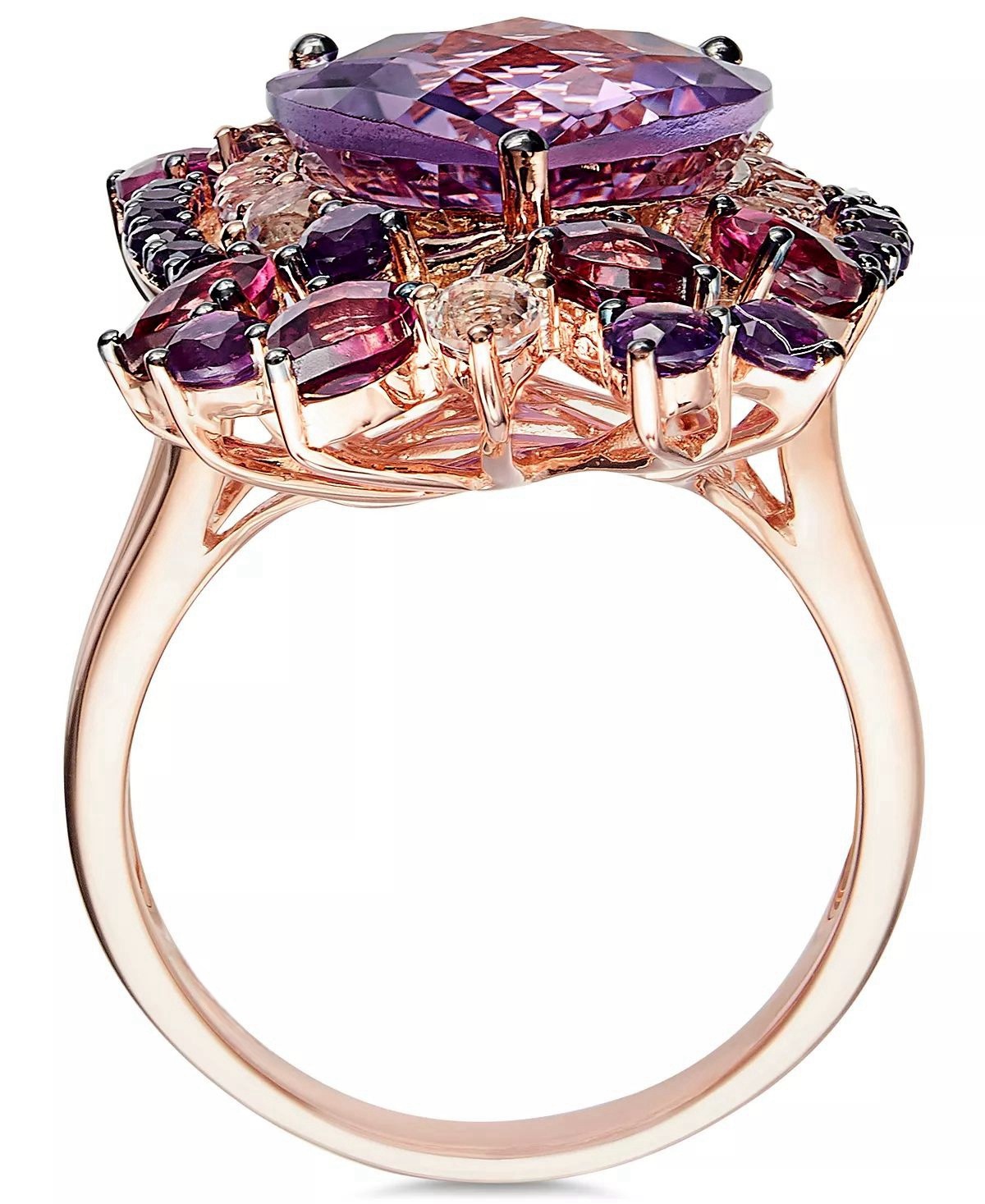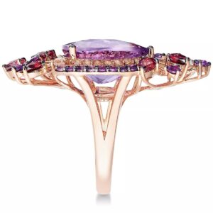Flirty, feminine and completely flawless. stunning ring features round and pear-cut amethyst (7 ct. t.w.), pear-cut rhodolite (1 ct. t.w.) and sparkling white topaz accents in 14k rose gold.